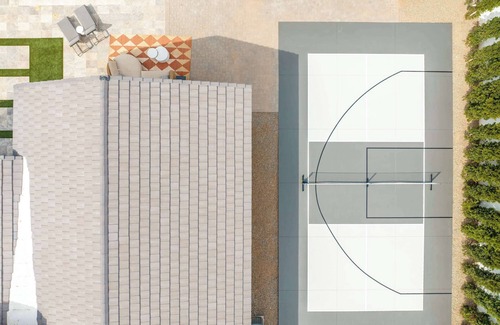 ⊙ Pickleball court, half court basketball, putting green and corn hole.