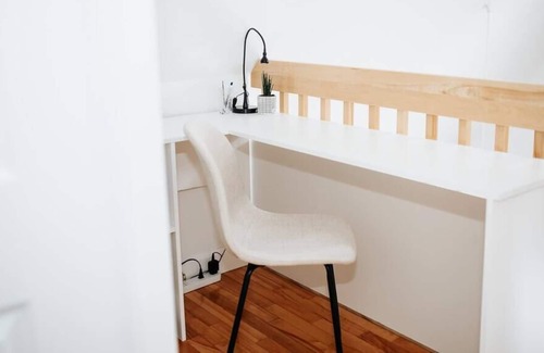 Decorated in peaceful shades of white and grey, you will be perfectly at home there and guaranteed not to miss anything.