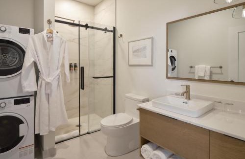 25 miles from Foresta Lumina in Magog-Orford, Hôtel Expérience - Quartier Des Marinas provides accommodations with access to a hot tub, spa facilities, and fitness room. Private parking is available on site. The accommodation features a sauna, free Wifi throughout the property, and family rooms. At the condo hotel, units include air conditioning, a flat-screen TV with streaming services, a kitchen, a dining area, a safety deposit box, and a private bathroom with a shower, bathrobes, and a hair dryer. A dishwasher, an oven, and microwave are also offered, as well as a coffee machine. At the condo hotel, units are fitted with bed linen and towels. There is a snack bar, and packed lunches are also available. Guests at the condo hotel will be able to enjoy activities in and around Magog-Orford, like hiking and walking tours. Guests at Hôtel Expérience - Quartier Des Marinas can enjoy skiing and cycling nearby, or make the most of the sun terrace. Parc de la Gorge de Coaticook is 26 miles from the accommodation, while Marais de la Riviere aux Cerises is 1.8 miles from the property. Montréal/Saint-Hubert Airport is 71 miles away.