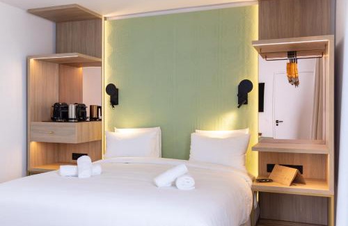 Featuring a bar, Hôtel Kyriad Prestige Paris Asnieres is located in Asnières-sur-Seine in the Île de France region, 2.9 miles from Stade de France and 4.1 miles from Arc de Triomphe. Featuring a terrace, the 4-star hotel has air-conditioned rooms with free WiFi, each with a private bathroom. Private parking is available on site. Guest rooms at the hotel come with a flat-screen TV and a safety deposit box. The rooms will provide guests with a desk and a coffee machine. The breakfast offers buffet, continental or vegetarian options. Speaking English and French at the 24-hour front desk, staff are ready to help around the clock. La Cigale Concert Hall is 4.1 miles from Hôtel Kyriad Prestige Paris Asnieres, while Pigalle Metro Station is 4.2 miles from the property. Paris - Charles De Gaulle Airport is 12 miles away.