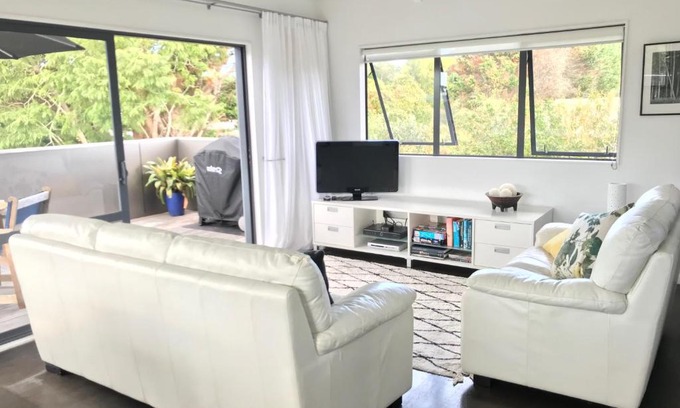 Hahei Beach Apartment offers accommodations in Hahei, a 6-minute walk from Hahei Beach and one mile from Cathedral Cove. This property offers access to a balcony, free private parking, and free Wifi. Offering a terrace and quiet street views, the spacious apartment includes 2 bedrooms, a living room, satellite flat-screen TV, an equipped kitchenette, and 1 bathroom with a walk-in shower. Towels and bed linen are offered in the apartment. The property has an outdoor dining area. During warmer months, you can make use of the barbecue facilities and eat on the private patio. Guests at the apartment can enjoy fishing and hiking nearby, or make the most of the garden.