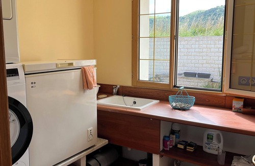 The fully equipped kitchen is a cook’s dream, offering all the tools and appliances you need to prepare a delicious Basque meal, whether you’re dining inside or stepping out to the BBQ and outdoor dining area.