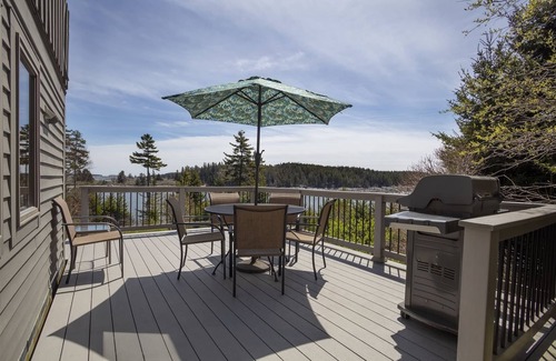 The Halcyon Point property sits on the end of aquiet, private road. With spectacular views of Norton Island and the Atlantic from the deck, living room and upstairsbalcony, you're never short of amazing eye candy even when it’s foggy.