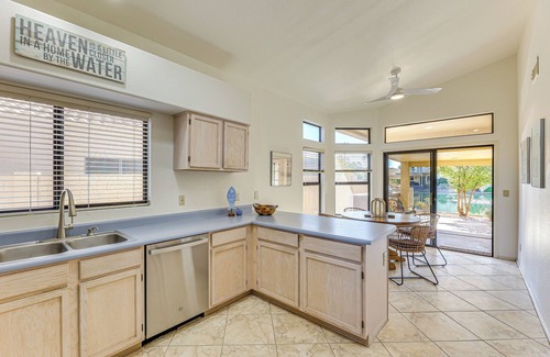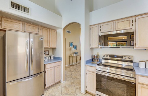Experience the best of Gilbert, Arizona, during an extended stay at this 2-bedroom, 2-bath vacation rental. This home is in the Stone Bridge community, offering access to a heated community pool, a furnished patio with an outdoor kitchen, and a prime location with easy access to the Heritage District. When you're not relaxing poolside, grab a bite to eat downtown or take a day trip to Phoenix!