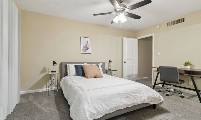Looking for an apartment in Vinings? The Halsten at Vinings Mountain offers contemporary interiors, luxury amenities, and a prime location. Enjoy a coffee lounge, sparkling pool, fitness center, and nearby Chattahoochee River National Recreation Area. This spacious 2 bedroom 1.5 bathroom fully furnished apartment comes with wood-style floors, fireplaces, and private patios. Conveniently located near I-75, Cumberland Mall, and Cobb Galleria.