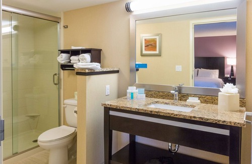 Recreational amenities at the hotel include an outdoor pool and a 24-hour fitness center.