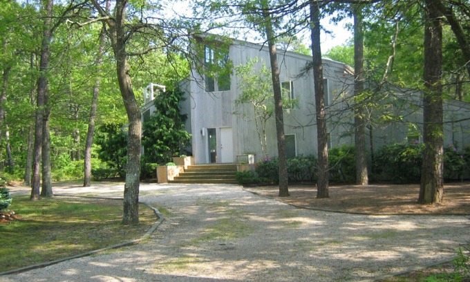 This spectacular, immaculate, sun-filled modern vacation home, tucked away surrounded by tall pine trees for total privacy and quiet. The interior 2,900 Sq ft.