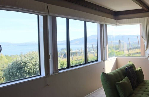 Enjoying an elevated position to capture panoramic lake views, this Hamurana holiday home includes cosy open plan living in the main house. Stay cosy by the fire and admire the scenery from indoors, or unwind in the sun with a private patio and BBQ area for summer stays!