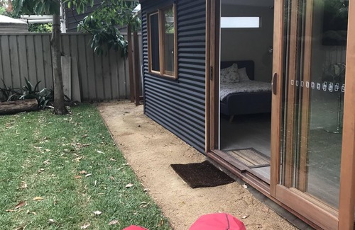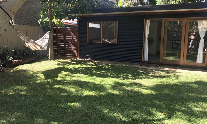 Perfectly positioned an easy flat 2 min stroll from Horderns beach with a tranquil shady yard and home comforts. Bright and breezy open plan studio with all the mod cons including fully equipped kitchen with induction cooktop, oven, full-size fridge, microwave, Soda stream, washing machine as well as coffee pod machine, tea, and basic pantry items. There is a queen bed with 100% cotton sheets and a generous ensuite bathroom with a large shower and amenities. There is also a double sofa bed in the living room. You can't go past the shady grassed yard complete with a new fire pit area, BBQ, outdoor hot shower, lounges, festoon lighting, beach umbrella, and a hammock that says 'kick back and relax'. It also boasts a large TV with Chromecast for streaming and a Bluetooth speaker for the tunes. There is something for the whole family with wifi, board games, balls, two adult bikes, kids toys and beach equipment. For the more adventurous why not take our double kayak or paddle board to explore the magnificent crystal waters of the Port Hacking (available on request as it is shared between our two places) The bungalow is open plan studio style so ideally suits 2 persons or a small family. It can accommodate 2 couples so long as you're comfortable with the open plan bedding arrangements. Ask us about our front house which is also listed. It can accommodate up to 7 guests with a connecting gate combining the two properties.
