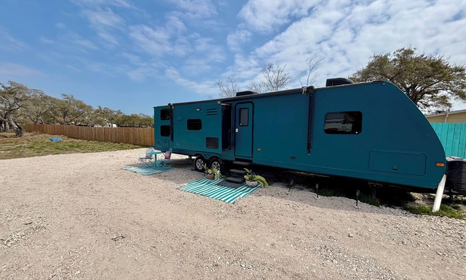 Nestled in a tranquil oasis just off state highway 188 and highway 35, The Happy Camper welcomes guests with its serene setting adorned by coastal swept oak trees, creating an idyllic retreat just moments away from numerous local attractions. Centrally situated between Rockport and Aransas Pass, this charming getaway promises both convenience and relaxation for travelers seeking to unwind amidst the natural beauty of the Texas Gulf Coast.