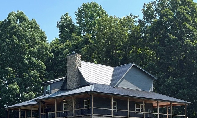 Experience beautiful sun rises and sunsets as you sit on the wrap around porch in the mornings. Relax in the 7 person hot tub on the concrete patio as you hear the relaxing fire in the fire pit area after cooking on the Black Stone Grill while the kids enjoy roasting marsh mellows. Vista Kentucky Farm and Mountain Views is just another plus.
