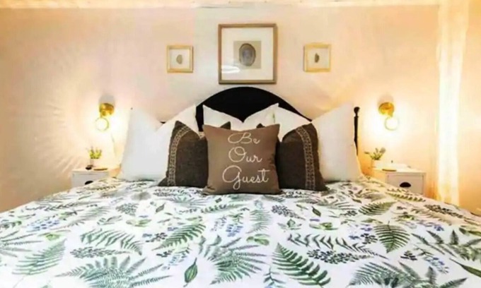 Front living room offers a pull-out Queen sofa sleeper, 72”4k Roku TV and front access to porch. Being an Old Historic Cottage, all doors are able to shut to ensure complete privacy and comfort for a guests sleep. (Sleeps 2 adults)