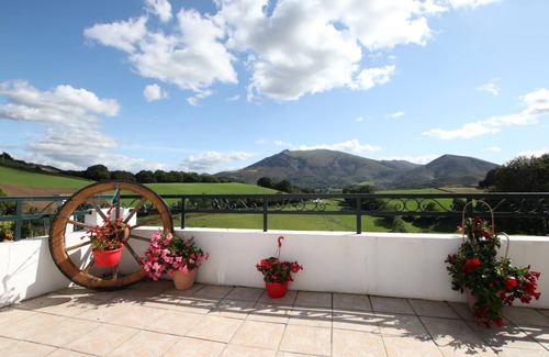 Gîte adjoining 1 year-round rental on an active farm (cattle). Ground floor: equipped kitchen area (microwave), living room, lounge area (insert fireplace). Bathroom. Wc. Laundry room. Floor: 2 bedrooms (2 140cm beds. 1 90cm bed.) bathroom/wc. Electric heating (meter reading) and wood extra. WiFi internet access. Possibility to rent sheets and household linen. Private terrace with views of Mount Ursuya and Baigurra. Garden furniture, barbecue. Car park. Small open garden. Gite in a village in the inland Basque Country between sea and mountains.