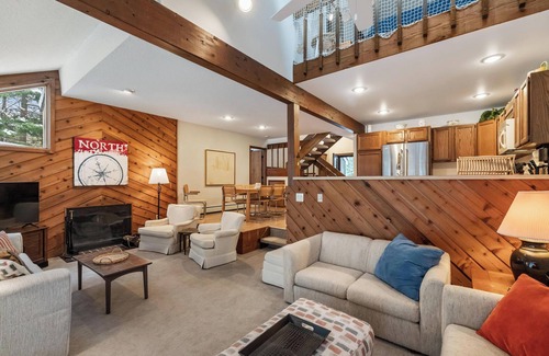 Upstairs features two bedrooms, One is furnished with a queen bed. The second bedroom has two double beds. There is a loft with two twins. These rooms share a full bathroom, making it easy to accommodate a larger group.