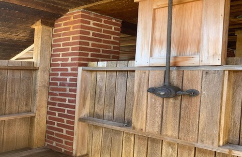 The bedroom and hallway have two twin beds and a large closet plus bathroom with claw tub. The outdoor private shower is a step off the back porch, adjacent to the family house. This cottage is for a discerning couple. No pets.