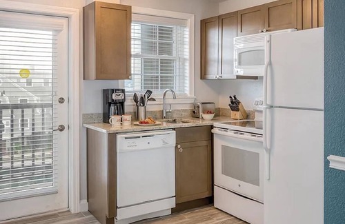 Offering spacious one-, two-, and three-bedroom resort suites that comfortably sleep four to eight guests and range from 800 to 1,800 square feet. Suites feature private bedrooms with one king bed in the master, one full bed or two twin beds in the guest rooms and a queen sleeper sofa in the living area. You will appreciate the economy of a full kitchen and the convenience of a washer/dryer in each suite. Plus, suites offer a separate living/dining area, and spacious balcony.