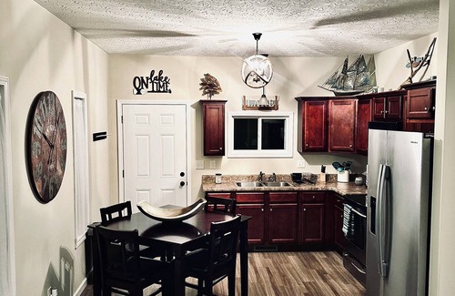 Newly built 2 bedroom 2 bath cottage located minutes from Jamestown Marina and picturesque Lake Cumberland. Beautiful scenic views during the day, then at night a fantastic illuminated wooded area surround a one of a kind outdoor living space boasting upper and lower level fire pits. Whether you prefer to grill out or cook in the fully equipped kitchen you will love the screened in porch to enjoy your meals. Plenty of outdoor space for parking your vehicles and boat. The cottage comfortably sleeps 8, and has smart TVs in the common area and both bedrooms. The area has many beautiful sites besides the lake, Fish hatchery, Mills springs Battlefield & Museum , Wayne County Historical Museum and much more. Also many places to eat out if you prefer not to cook while on vacation! So whether you are looking for a relaxing or exciting vacation Harbor Hideaway will accommodate your needs!