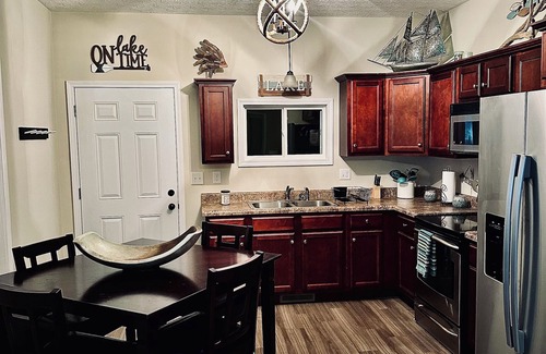 Newly built 2 bedroom 2 bath cottage located minutes from Jamestown Marina and picturesque Lake Cumberland. Beautiful scenic views during the day, then at night a fantastic illuminated wooded area surround a one of a kind outdoor living space boasting upper and lower level fire pits. Whether you prefer to grill out or cook in the fully equipped kitchen you will love the screened in porch to enjoy your meals. Plenty of outdoor space for parking your vehicles and boat. The cottage comfortably sleeps 8, and has smart TVs in the common area and both bedrooms. The area has many beautiful sites besides the lake, Fish hatchery, Mills springs Battlefield & Museum , Wayne County Historical Museum and much more. Also many places to eat out if you prefer not to cook while on vacation! So whether you are looking for a relaxing or exciting vacation Harbor Hideaway will accommodate your needs!