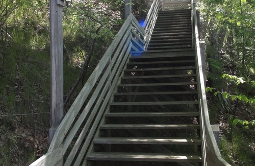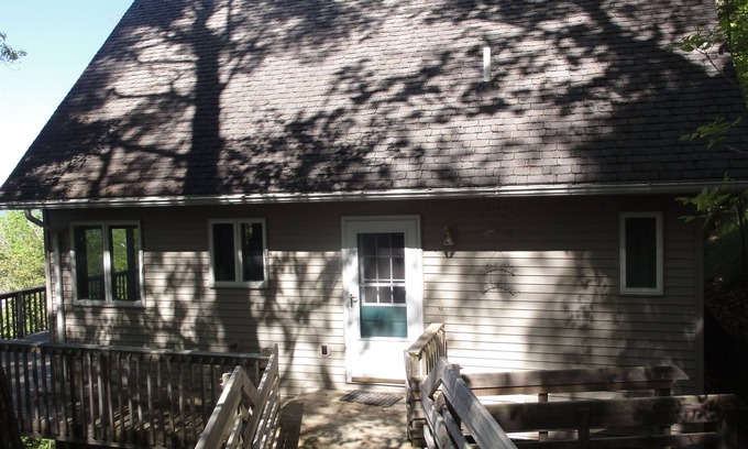 This cottage is the perfect retreat for the family. Located on a bluff just above Lake Michigan. The huge oversized upper and lower deck are a great place to relax, dine, enjoy the view, and listen to the sounds of Lake Michigan and the forest. The wide staircase down to the cabin provides a quiet secluded home without view of neighbors. The cottage is on a bluff above the lake.