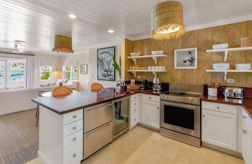 Perched along the serene bay at the southern tip of Harbour Island, Low Tide is one of two cottages on property, nestled closer to the water, offering uninterrupted views from this little slice of paradise. This stylish two-bedroom, two-bathroom cottage is designed for comfort, elegance, and unforgettable sunset views. This 1,400 sq. ft. retreat offers beautifully curated indoor living, seamlessly connected to an expansive 700+ sq. ft. private deck — the perfect spot to unwind and soak in the peaceful coastal atmosphere.