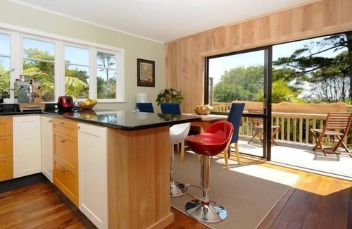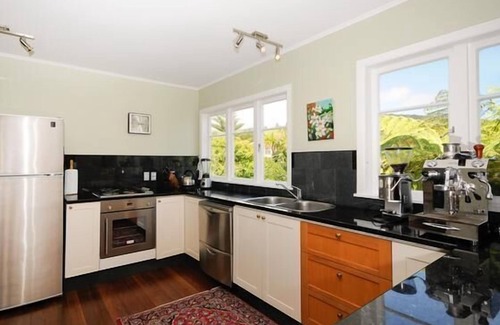 Harbour views from spacious 3 BEDROOM 2 BATHROOM house with decking in a setting of mature gardens and bush. Outdoor wood-fired pizza oven. Child sized canoe available upon request.