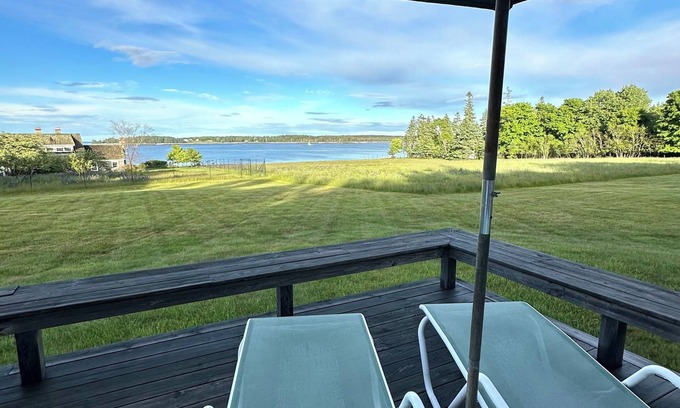 Hard Aground is an ocean-view home uniquely positioned right outside Southwest Harbor. Enjoy picturesque views of the Windward Way and Cranberry Island from the wood deck, dining, living, primary bedroom, and upstairs bedrooms. Guests will also enjoy the abundant wildlife of this quiet location. Deer and different types of birds often come to graze in the open fields each morning and evening. The home has a galley kitchen with granite counters, stainless steel appliances, dishwasher, Keurig and drip coffee maker, toaster, full pots and pans for cooking and hopefully anything else a family might need; there is dining/breakfast room with windows on each side for stunning views plus outdoor seating for dining. The family room has views out over the deck to the water, door to the deck, and smart tv for nightly movies. On the main level, you will find a room with king bed overlooking the lawn with water views and smart tv, another bedroom with queen-size bed, and a shared updated bathroom with walk-in shower, and laundry. The upstairs is cozy, with two bedrooms with water views, queen-sized beds, one with crib, smart tv’s, and an updated bathroom with a bathtub. The property comes with two dedicated parking places.