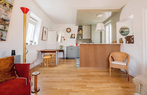 An eclectic mix of colours, décor and furnishings interact in this enchanting two-bedroom home, all combining to form a stunning first impression. Situated in the vibrant 14th arrondissement, live like a local with this charming apartment as your base: explore the exciting, historic Montparnasse district nearby – or if you have an affinity for the mysterious, the renowned Paris Catacombs awaits.