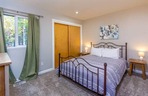 Harper Getaway is set amidst the trees, just South of Sunriver Village, in a quiet neighborhood and paved street. The home sits back from the road so you feel like you are in your own private park with a fully fenced acre of land to enjoy! Harper Getaway is a fantastic getaway with its proximity to Mt. Bachelor (25 min), a hot tub to relax in after a good hike, a wood burning stove for those cozy evenings you will be feeling right at home! The back deck and yard are the perfect area to sit and enjoy each other and have your own little picnic! You can take a quick 1-minute drive to Harpers Bridge (river access) or you can walk in less than 5 minutes... Take your tubs and be on your merry way!