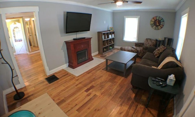 Harper Two Bedroom House in Historic Loveland offers accommodations in Loveland, 18 miles from Cincinnati Observatory Center and 21 miles from Cincinnati Zoo and Botanical Garden. The air-conditioned accommodation is 6.9 miles from Kings Island. Freedom Center is 24 miles away and Paul Brown Stadium is 24 miles from the vacation home. With free Wifi, this vacation home offers a TV, a washing machine, and a fully equipped kitchen with an oven and microwave. Towels and bed linen are featured in the vacation home. The accommodation has a fireplace. Guests can also relax in the garden. Cincinnati Zoo is 21 miles from the vacation home, while Great American Ball Park is 23 miles away.