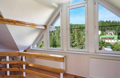 Large house "Harrachov 497". In a quiet, sunny position, 1.5 km from the skiing area, 200 m from the river. Parking, single garage. Supermarket 900 m, restaurant, bakery, café 200 m, bus stop "Harrachov U Motejlků" 100 m, railway station "Harrachov" 2.5 km. Golf course (9 hole) 2.5 km, minigolf 2 km, ski bus stop 100 m, children's ski school 300 m, cross country ski track 900 m. Nearby attractions: Mumlava vodopád 3500m,Dvoračky 10 km, Dinopark (Pl) 15 km, Hornické muzeum 2.5km,Ski muzeum 2.2 km, Termy Cieplickie(Pl) 30 km, Giganteria Piechowice(Pl) 20 km, Běžecký lyžařský areál Jakuszyce(Pl) 5 km. Well-known ski regions can easily be reached: Harrachov 1.5 km, Rokytnice n/J 15 km, Rejdice 15km,Paseky n/J 15 km. Hiking paths: Bukovec 15 km, Jizerka 15km,Údolí Jizery 6 km, Park miniatury Kowary 44 km, Labská bouda 15km,Vosecká bouda 10 km. Free ski bus service to the ski region s HarrachovCard. HARRACHOV CARD guest card included in the price.