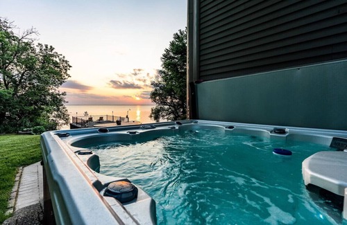 Spacious Hot Tub: Soak in the hot tub while overlooking the peaceful waters of Lake Winnebago.