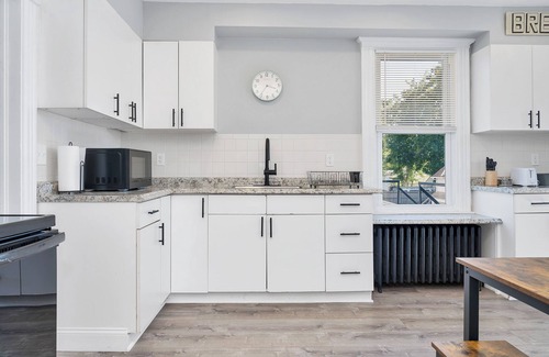 Welcome to Hat City Danbury II! Our Lovely Bright Private Two Bedroom second floor apartment is perfectly situated in the heart of Danbury. Generous closet space, large fully stocked kitchen and comfortable living room with two Queen Bedrooms on opposite sides of the unit for ultimate privacy, a tub shower bathroom with all amenities. Three flat screen TV's and Secure camera monitored Parking for two cars along with side door entry and fire escape. Feel right at home in the middle of it all!