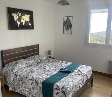 Featuring a garden, Haut de villa, vue mer panoramique provides accommodations in La Cadière-dʼAzur. This property offers access to a balcony, free private parking, and free Wifi. Outdoor seating is also available at the vacation home. Providing a terrace and sea views, the vacation home includes 2 bedrooms, a living room, flat-screen TV, an equipped kitchen, and 1 bathroom with a bath and a shower. Towels and bed linen are provided in the vacation home. There's also a seating area and a fireplace. Circuit Paul Ricard is 10 miles from Haut de villa, vue mer panoramique, while Toulon Train Station is 13 miles away. Toulon - Hyeres Airport is 25 miles from the property.