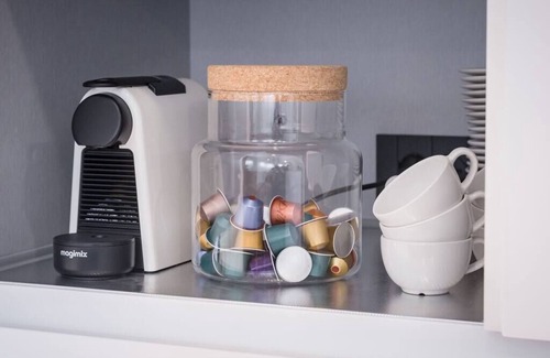 lave-vaisselle, cafetiere, bouilloire, grille-pain, blender, ustensiles de cuisine et nombreux rangements.