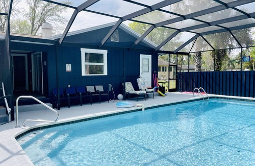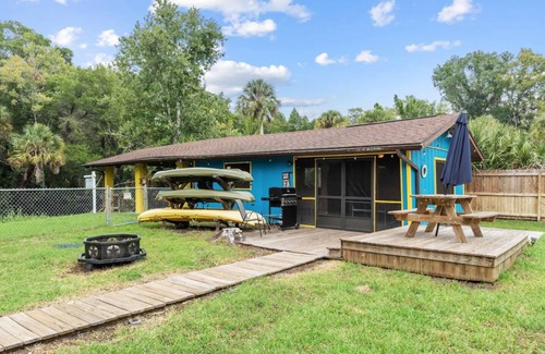 This newly renovated waterfront home is a boating and nature lovers paradise. It includes a boat house with attached game room, screened pool, screened wrap around porch, fire pit, private playground and 6 kayaks. All with beautiful views of the river and preserved state lands. Take a kayak ride 20 minutes to the springs to enjoy the manatees and dolphins. Stop in at a restaurant overlooking the water on the way. You will also enjoy the inside of the home with updated appliances, fully stocked kitchen, smart TV’s, board games and stylish furnishings. Please note: It’s necessary to pass under the Halls River Bridge in order to get to the gulf. The bridge has a 6 foot clearance.