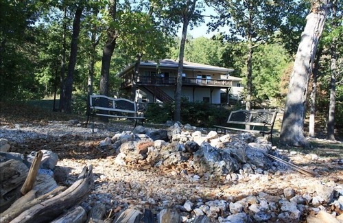 Now to the great outdoors. This is why we come to the Lake right? We have over 1400 sq ft on two levels of covered decks. A natural creek and waterfall runs through the property and you walk from the lower deck over a bridge to the back yard. The space is cleared and very open with a path to the waters edge and a large fire pit. Our property is three lots wide and has approximately 300' of lake front. Several cliffs along the water to fish from and easy access into the water. Definitely the best fishing on lake is the Kings River Arm. When the pro's come to town this is where they fish. Crappy, Bass, Walleye and Catfish. Trout fishing is available in three locations just a short 10 min drive to the Roaring and White Rivers.