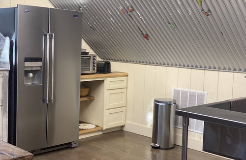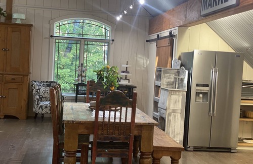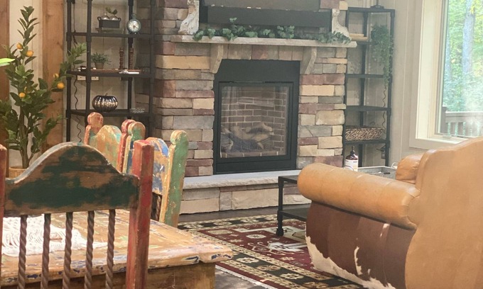 This eclectic property is located in a former artist loft, tucked away above the barn. You’ll find it easy to relax in this quiet corner with the wooded views. When the weather permits, the balcony provides more stunning views and a space to unwind and enjoy your meal al fresco. This is a cozy spot to relax, a truly unique place to hang out with family or friends. If you're looking to unwind on the balcony with a glass of wine or curl up next to the fireplace with a cup of coffee and a book, the Haven at Corey Bluff is calling your name.