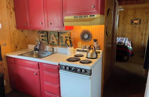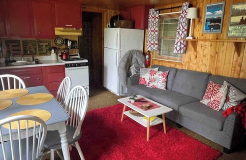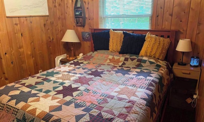 You will have the entire cabin to yourselves. It is super cozy with all the amenities for cooking and preparing your own meals. The living and dining space are quaint and cozy; the table seats 6 if pulled out. The bedrooms are quite spacious and the beds are comfy with memory foam mattresses. There is a small bathroom with a cozy corner shower. The Knotty pine interior and a pellet stove complete the north woods ambiance.