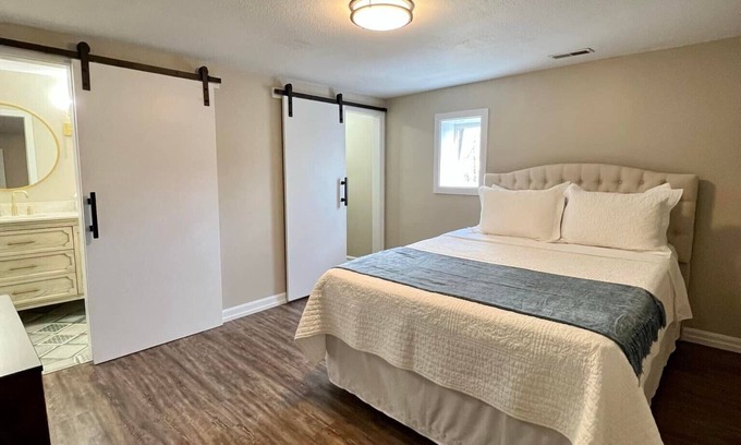 Newly renovated suite in historic 1800s Alto Pass Milling Co building. Private, spacious and very clean. Upstairs from new bourbon bar on Main St in Alto Pass. Part of Havisham House Property. Close to Bald Knob Cross of Peace and in the heart of the Shawnee Hills Wine Trail & Shawnee National Forest. Hiking trails all around us. Bourbon bar hours: Thu/Fri 3-10 p.m.; Sat 12-10 p.m.; Sun 11-5 p.m. Three bedrooms, each with queen bed, two full bathrooms, spacious living room & kitchen. Smart TVs in living room and one bedroom. Exit door to balcony seating off living room. Suite 18 is across the hall and sleeps two (VRBO 2698184)