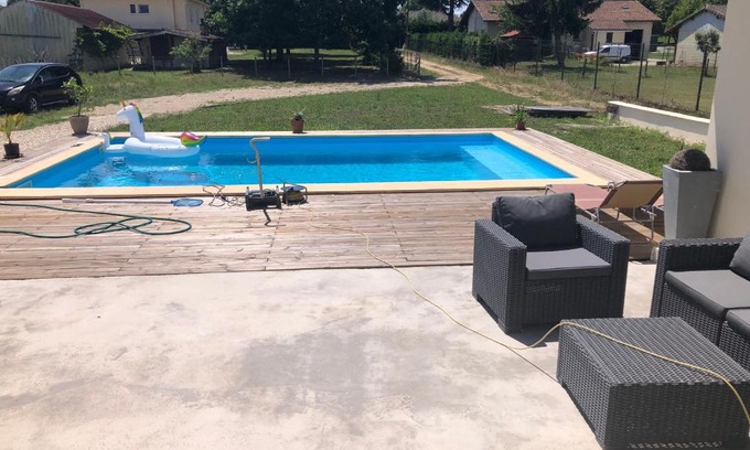 Havre de paix offers accommodations in Fontet, 10 miles from Graves et du Sauternais Golf Course and 15 miles from Marmande Golf Course. This property offers access to a terrace, free private parking, and free Wifi. The accommodation offers a shared kitchen and full-day security for guests. A flat-screen TV is offered. The accommodation is non-smoking. Guests can swim in the pool with a view, relax in the garden, or go fishing or walking tours. Célestine Grotto is 19 miles from the homestay, while Sauve-Majeure Abbey is 24 miles from the property. The nearest airport is Bergerac Dordogne Périgord Airport, 43 miles from Havre de paix.