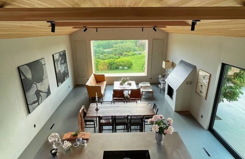 If you enjoy unique architecture, Scandinavian design, fantastic views and outdoors spaces this house is for you! There is a fenced in in-ground pool with bluestone patio surround, lounge chairs to enjoy the sunshine by the pool. The pool is shared with the pool house guests or if you desire complete privacy you can rent both the house and the pool house as one, see links below.