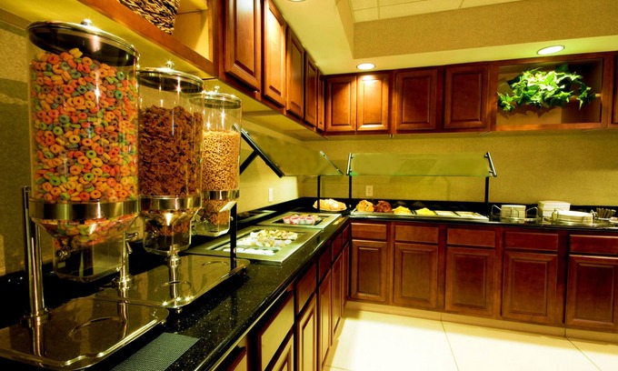 An outdoor pool, a 24-hour fitness center, and a snack bar/deli are available at this hotel. Free buffet breakfast, free WiFi in public areas, and free self parking are also provided. Other amenities include a conference center, a hot tub, and coffee/tea in a common area.