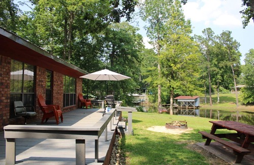 There is a community boat launch 200 yards away from the lake house. There is a floating dock in the back of the lake house. The game room has a pool table, dart board, and wet bar. Outside in the backyard is a fire ring. Also, there is a lighted fish cleaning station. Pets are welcome, but if you leave the house for any reason, please kennel them while you are gone.