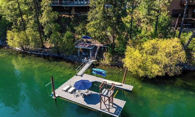 Experience Hayden Lake from your lakefront escape with a private dock, kayaks, jump tower, and 180° views. This spacious retreat sleeps 12 and features 3 decks, central A/C, Wi-Fi, and a game-ready layout perfect for families or groups. Soak up the scenery, swim off the dock, and enjoy everything lake life has to offer at North Branch Lake Home.