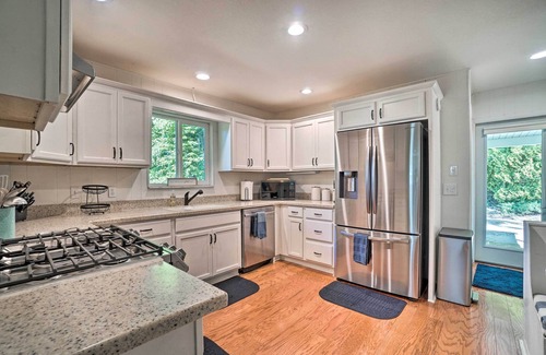 Indulge in a winter escape with your favorite crew at this Hayesville home! This 4-bedroom, 3-bath vacation rental offers stunning mountain views and a relaxing home base for your adventures. Drive up Bell Mountain to admire the panoramic scenes or enjoy local beers at Nocturnal Brewing. As sunset welcomes the crisp evening air, unwind by stargazing from the balcony or warming up by the fireplace!