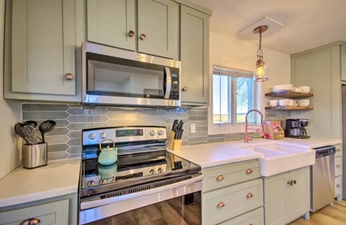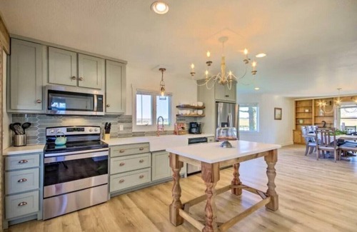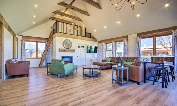 Welcome to Headquarters at Prairie Base! Situated on a family cattle farm between Rolla & St. James, MO, this serene getaway boasts panoramic views, an upscale design, and all the comforts of home. This spacious 5-bedroom, 3.5-bath vacation spot features a screened porch, full kitchen, soaking tub, loft, kids nook, and a washer/dryer. Visit Missouri S & T, Fugitive Beach, or sample local libations in St. James. After, get cozy by the fireplace or enjoy a quiet evening by the fire pit.