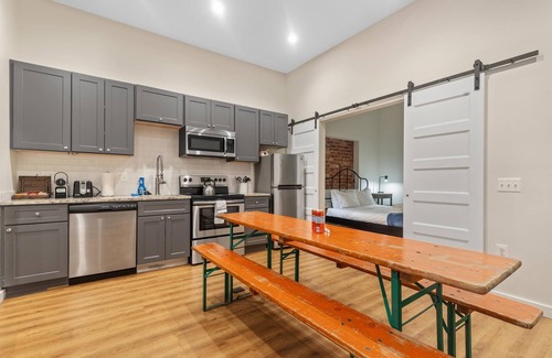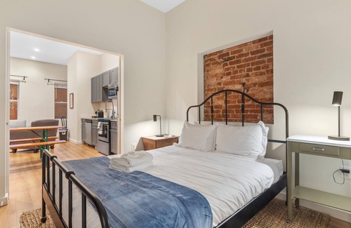 Guests will have entirely private access to this 1-bedroom, 1-bathroom suite, located within a classic D.C. building that even features a pizzeria at street level!