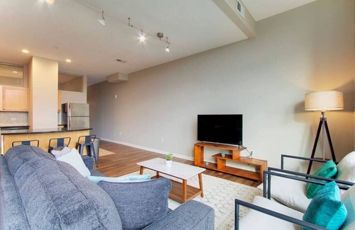 Unwind in this luxury two bedroom apartment in Downtown Cleveland, an area with historic and cultural charm. Downtown Cleveland is full of award-winning restaurants, bars, shops, art galleries, and attractions. Adventure through all that Cleveland has to offer with this centrally located apartment. Once you are ready to relax, retreat to this comfy home!