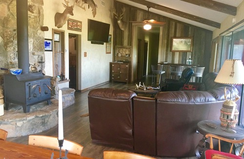 5 bedrooms and 5 baths, newly added! 325-347-2900 complete privacy of entire lodge as only booked to one guest request at a time. $225 a night for 2 and $25 for each additional person per night.