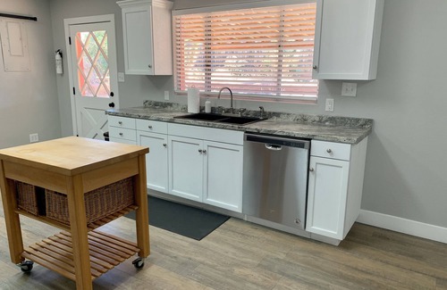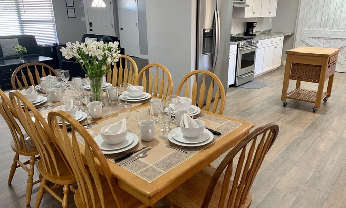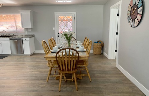 Everything is brand new! Large, comfortable family home with fast WiFi, lots of common area space and a fenced back yard with covered patio. Within walking distance of restaurants, shops and tourist activities.
